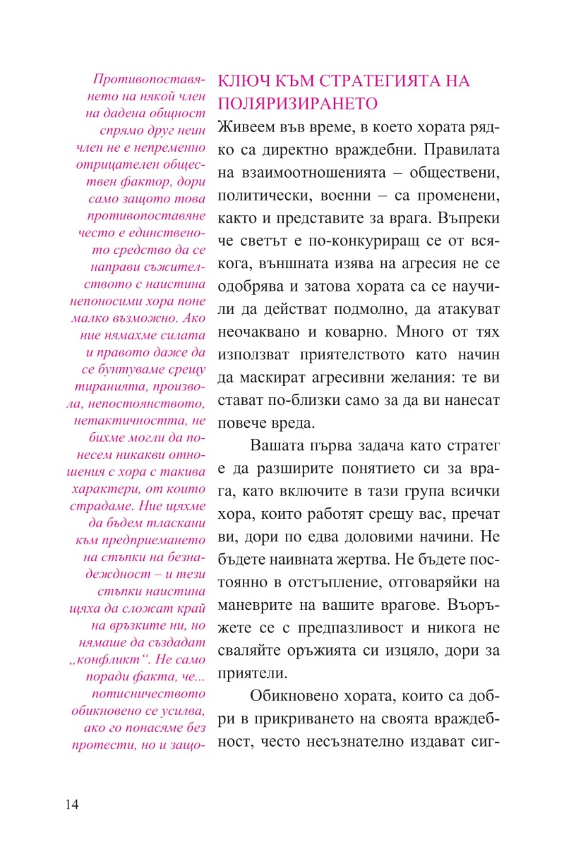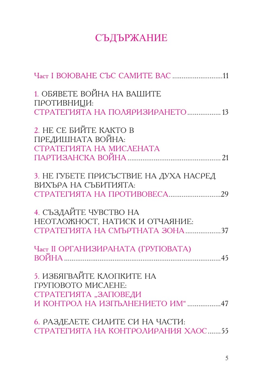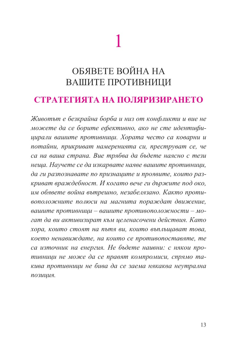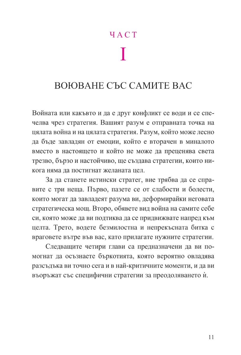 Тази книга не е за войната на бойното поле, а за онази, която се води в ума, в офиса, в любовта и в обществото. Тя ще ви даде психологическия арсенал да преодолеете пораженията, да надвиете противниците си и да извоювате трайно превъзходство – с интелигентност, търпение и безупречна стратегия.