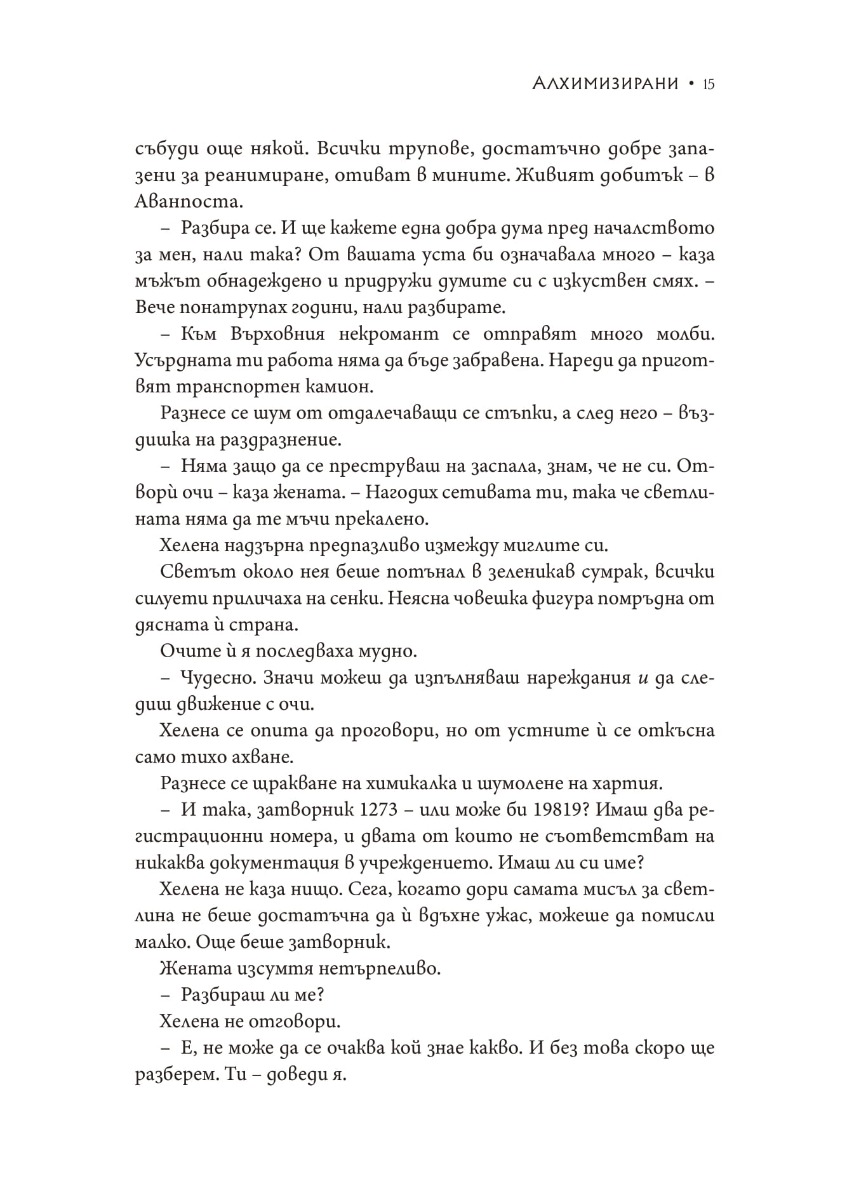 В този завладяващ дебют в най-добрите традиции на мрачното фентъзи една жена с изгубени спомени се бори за своето оцеляване в свят, разкъсан от война между некромантия и алхимия – и срещу мъжа, който трябва да разкрие най-дълбоките тайни от миналото ѝ.