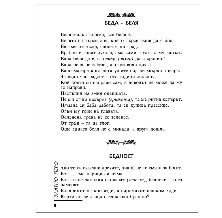 В настоящото издание са подбрани едни от най-интересните и често употребявани образци на езиковото и културно богатство на българския народ.