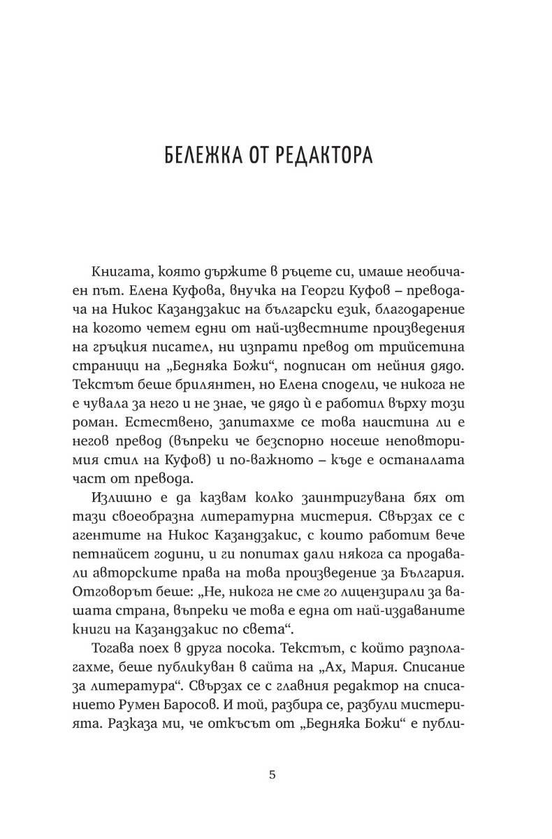 Никос Казандзакис е забележителен творец, чиято работа е белязана от вечния конфликт между плът и дух и от дълбока философска и духовна амбиция.