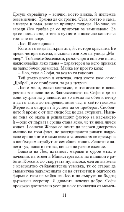 Над Софи сякаш тегне неведомо проклятие. От няколко години животът й се е превърнал в кошмар, от който тя неуспешно опитва да се отърси. Всичко започва с на пръв поглед най-безобидна разсеяност, която, обаче, бързо преминава в необяснимо и все по-задълбочаващо се физическо и психическо неразположение. В крайна сметка тя губи работата си и съпруга си, останал инвалид след автомобилна катастрофа, който се самоубива при съмнителни обстоятелства. Идва и най-страшното – отново без да може да си обясни защо и как, Софи се превръща в убийца-рецидивист, издирвана от полицията на цяла Франция. И тя се впуска в отчаяно бягство, докато ненадейно не се появява Франц… Но кой е Франц и каква е тайната на вехтата булчинска рокля, която той пази като зеницата на окото си?
