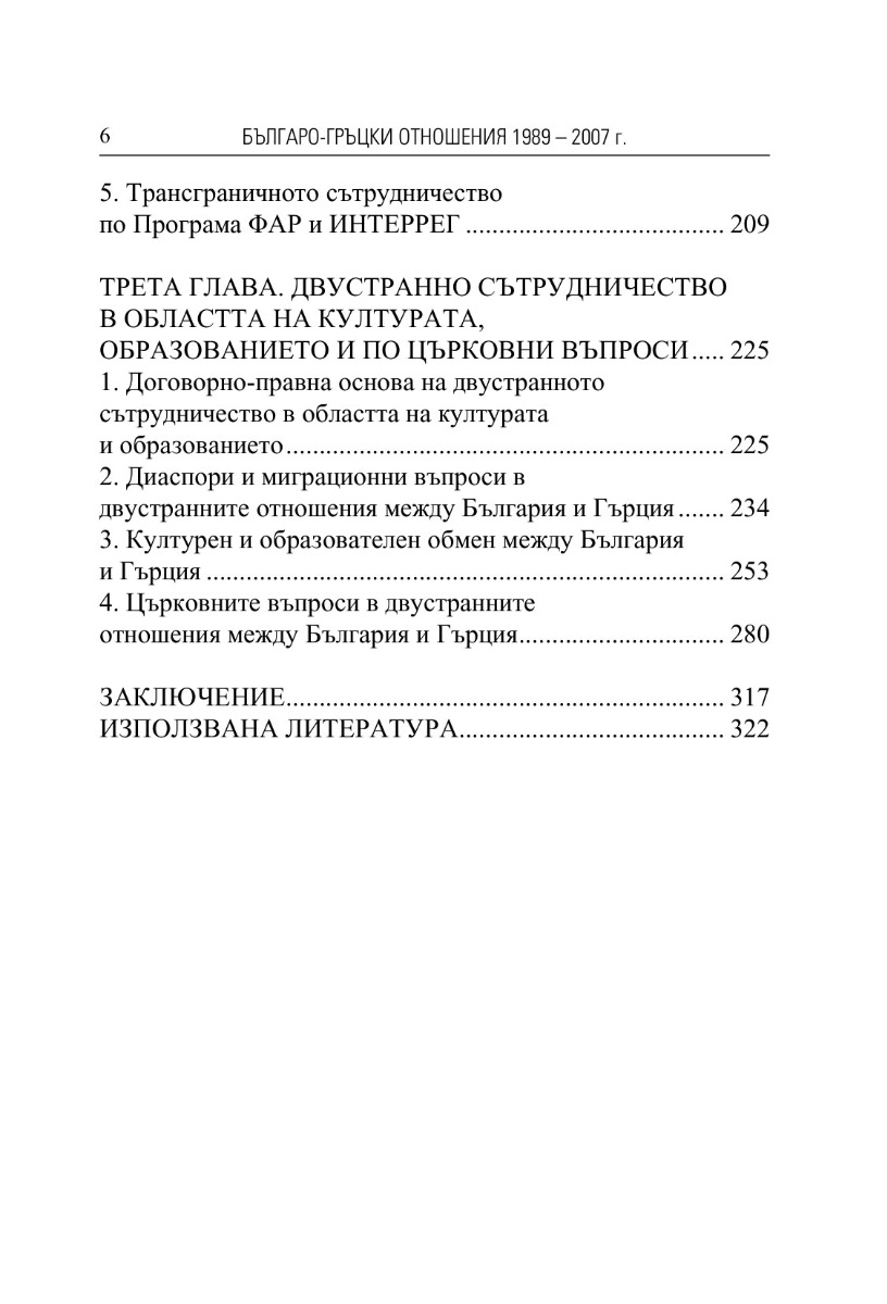Настоящият труд изследва развитието на двустранните отношения между България и Гърция в периода 1989–2007 г. – от началото на демократичния преход до членството на България в Европейски съюз. Проследява се трансформацията на отношенията от идеологическо противопоставяне към устойчиво добросъседство, политически диалог и стратегическо партньорство. Специално внимание е отделено на ролята на Гърция в процеса на присъединяване на България към НАТО и Европейския съюз. Изследването доказва, че българо-гръцките отношения в разглеждания период се утвърждават като значим фактор за стабилност, сигурност и европейска интеграция на Балканите.