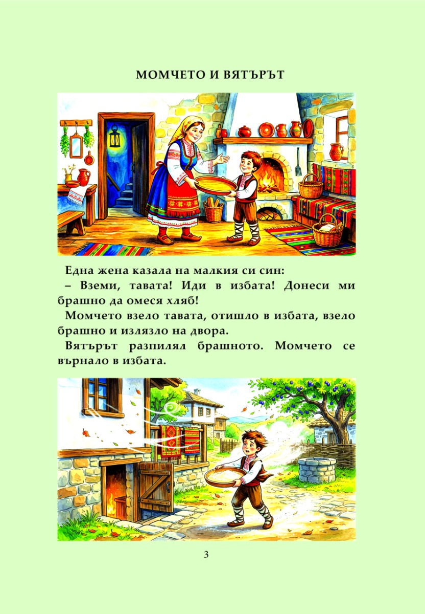 В настоящата книжка ще прочетете приказките за момчето и вятъра и за работливия кос. Приятно четене!