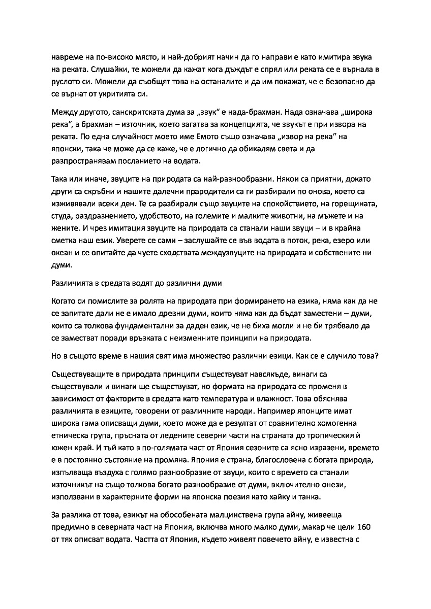 В „Чудото на водата“ д-р Емото показва как уникалната роля на водата в пренасянето на естествената вибрация на тези думи може да ви помогне да посрещнете промените и да живеете един по-позитивен и щастлив живот. Авторът разглежда и важното значение на думите и езика, на техния произход и на въздействието им върху водата. Той въвежда и обяснява ключовата концепция за резонанса, чрез който се предава жизнената сила. От това знание той извежда уроци, които можем да приложим в живота си, за да пожънем облагите от позитивния резонанс, включващи по-хармонични взаимоотношения, възстановено здраве и подобрено общуване.