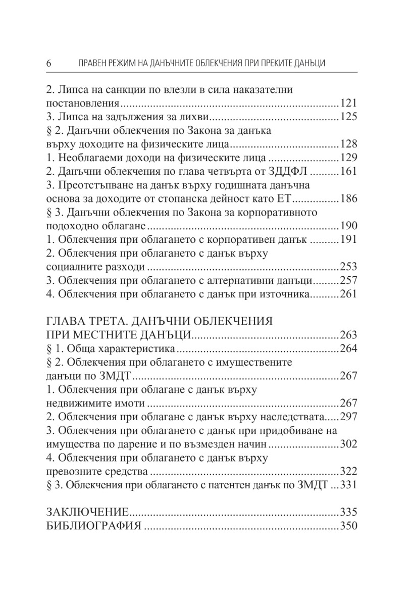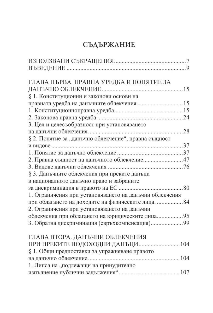 В книгата се разглежда съвкупността от действащи правни норми, с които се установяват по-благоприятни данъчни режими при облагането с преките данъци – данъка върху доходите на физическите лица, местните данъци и данъците, уредени в Закона за корпоративното подоходно облагане. Като специални правила, дерогиращи общо правило за облагане, данъчните облекчения са разгледани като субективни права на задължените за данъци лица, като данъчни разходи на плоскостта на бюджетното право и като фискална държавна помощ в условията на единен европейски пазар. Изведени са общите характеристики на правните норми, установяващи данъчни облекчения и е изследвана съдебната практика по тяхното прилагане, като са очертани конкретните проблеми, които възникват в правоприлагането. Направени са предложения за усъвършенстване на законодателството.