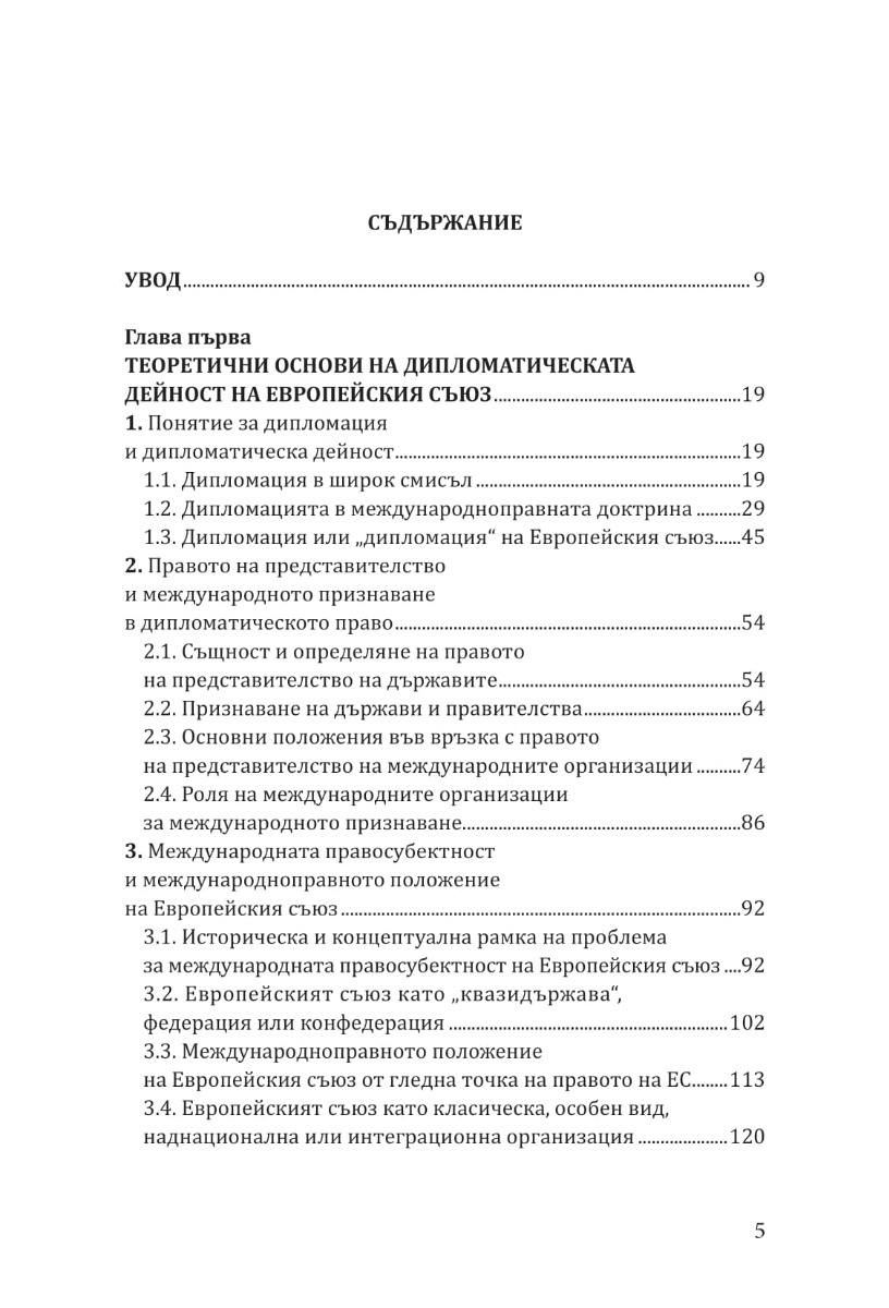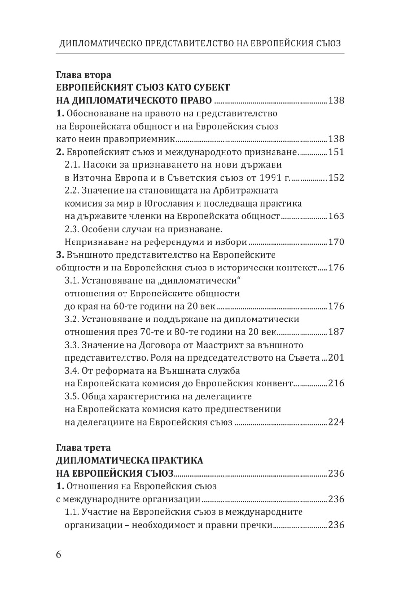 Книгата представлява първото всеобхватно монографично изследване в българската научна литература на дипломатическото представителство на Европейския съюз. В нея е използван инструментариумът на международното публично право, за да се анализира специфичната дипломатическа дейност на Европейския съюз и постоянните институционализирани форми на представителство на ЕС. Изходната теоретична и доктринална предпоставка за анализ е триединството на международна правосубектност, дипломатически отношения и право на представителство. Структурата и съдържанието на труда са изцяло подчинени на тази логическа връзка и на адаптирането ѝ към ЕС, който на фона на държавите е нов и особен участник в дипломатическите отношения.