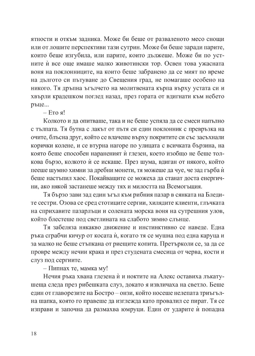 Достопочтеният брат Диас е призован в Свещения град, за да получи признание и висок пост в Църквата. Вместо това се оказва начело на свещен отряд от истински дяволи – прокълнат рицар тамплиер; вампир аристократ с безупречни маниери и кървави навици; върколачка с изявен вкус към човешкото месо; некромант, който дирижира трупове като симфония; полуневидима елфка, изпълнена с ненавист към хората; опитна убийца с мрачно минало. Тази абсурдна пасмина е окована в нерушимо папско заклинание да отведе една дръзка улична крадла до Троя, защото – как иначе? – тя е отдавна изгубената наследница на узурпирания от могъща магьосница Змийски трон.