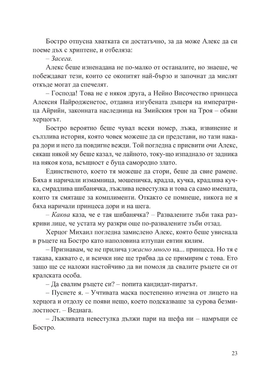 Мисията им е невъзможна изначално. Те трябва да прекарат тази невежа принцеса през опожарена, пропита с магия и кръв земя, да оцелеят в битки с демонични твари, да измамят алчни владетели и фанатични кардинали и – ако небето е милостиво – по възможност да не се избият помежду си.