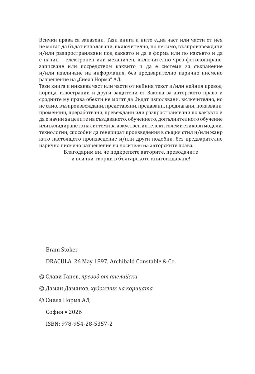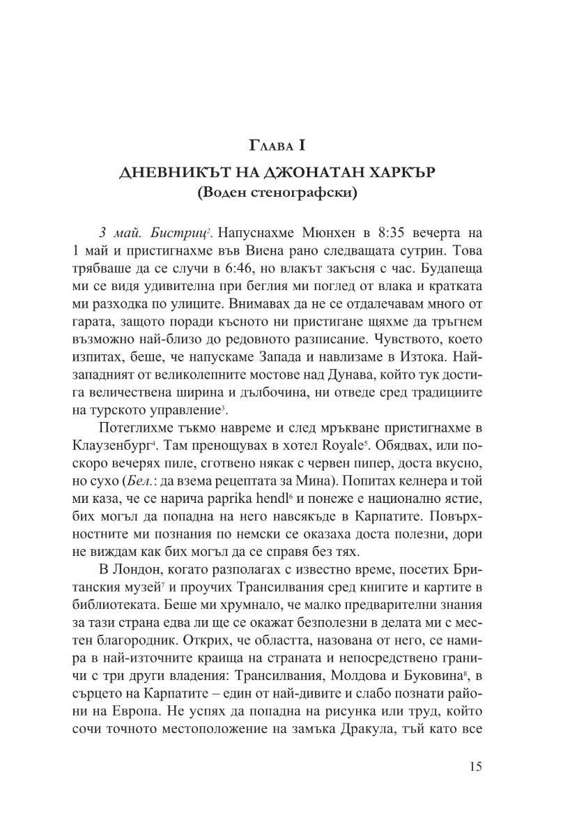 Разгръщате единствено по рода си издание на „Дракула“. То съдържа цялото произведение – без пропуски, без добавени сцени, без преиначени изрази и думи. Включените бележки към него поясняват непознатото за съвременния читател, тълкуват замислите на автора и препращат към мненията на изтъкнати специалисти.