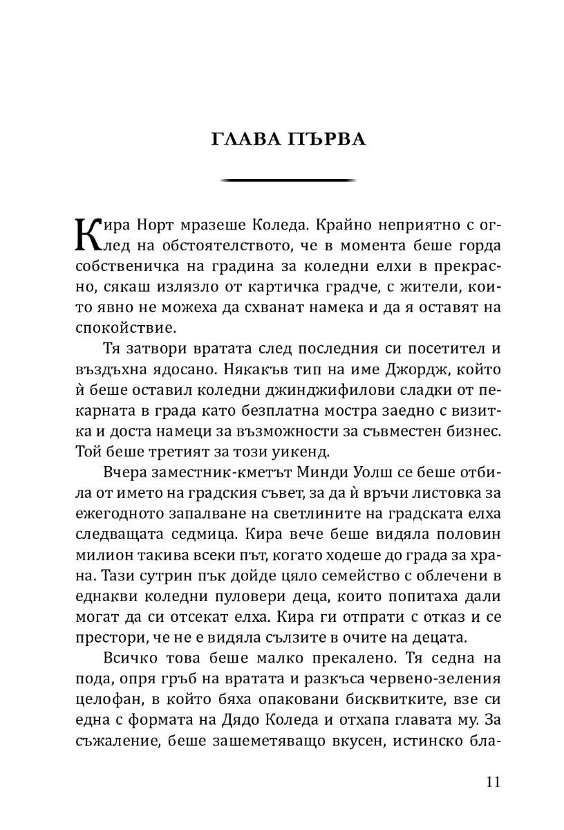 Кира Норт ненавижда Коледа. И в това не би имало нищо чак толкова лошо, ако… с последните си пари тя импулсивно не беше купила „живописна“ (според обявата) къща. Без да подозира, че тя се намира насред запусната градина за коледни дръвчета!