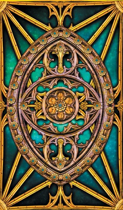 Light is the key to understanding this masterpiece by Erik C. Dunne and Kim Huggens, because it works as a beacon for your pursuit of enlightenment—a warm, comforting light that frees the mind, relieves from fears, and provides the energy to push beyond limits and face difficulties along the way. Like a stained-glass window in a church, all of life's tassels will shine once they are touched by the divine light of Illuminati Tarot, revealing the full picture that was previously concealed. These tarot cards have gilded edges.