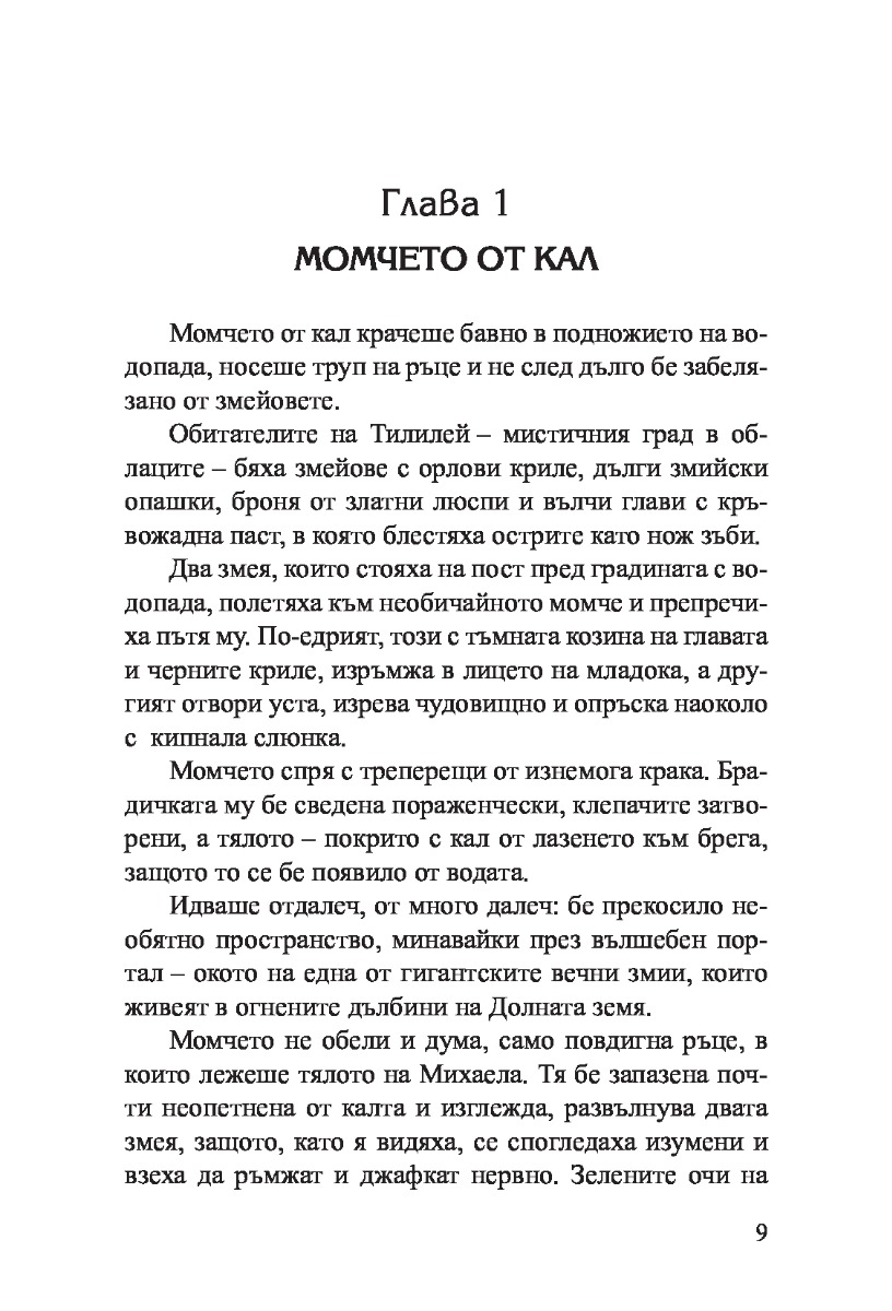След вълнуващите приключения в Долната земя Кало Змея най-после открива как да стигне до родното място на своя баща – Тилилей, мистичния змейски град в облаците. Но това не е борбеното момче, което скача по покривите на Румица и е готово да предизвика целия свят. След толкова битки и поражения, след толкова загуби и натрупани болки Кало е склонен да се предаде и да понесе наказанието за делата си. Сега единствено прошката може да го спаси. Но дали ще я намери в Тилилей?