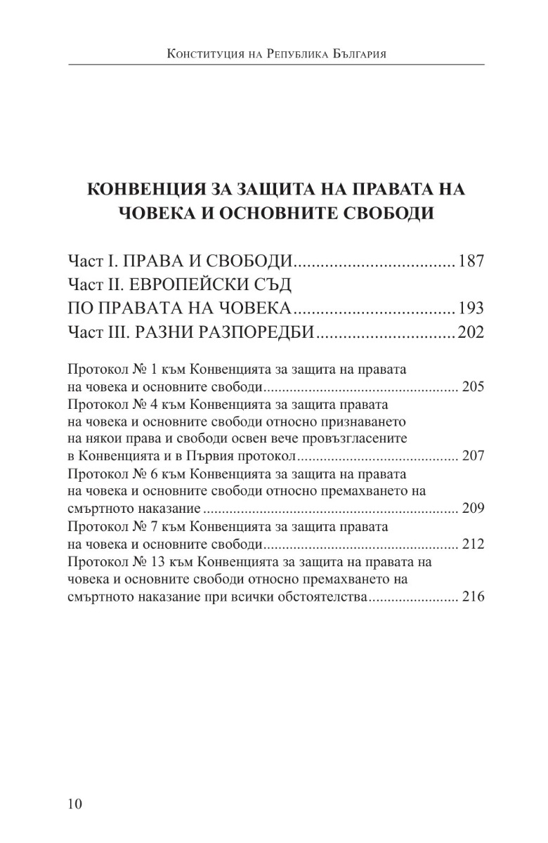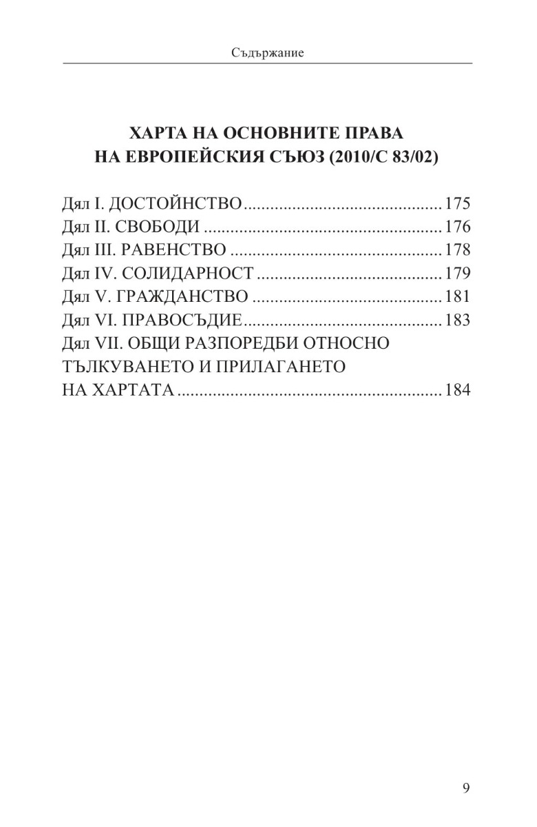 Изданието включва също Хартата на основните права на Европейския съюз, както и Конвенцията за защита на правата на човека и основните свободи с Протоколи № 1, 4, 6, 7 и 13 към нея.