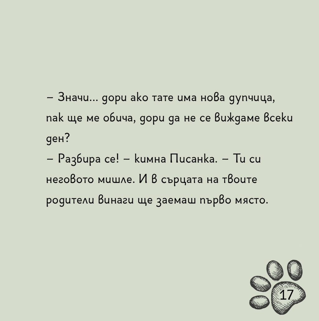 Историята е подходяща за деца, които преживяват раздялата на своите родители. Тя им помага да осъзнаят, че не носят вина за случващото се, че любовта на мама и татко към тях остава непроменена и че могат да се чувстват обичани и сигурни, дори когато родителите им не живеят заедно.