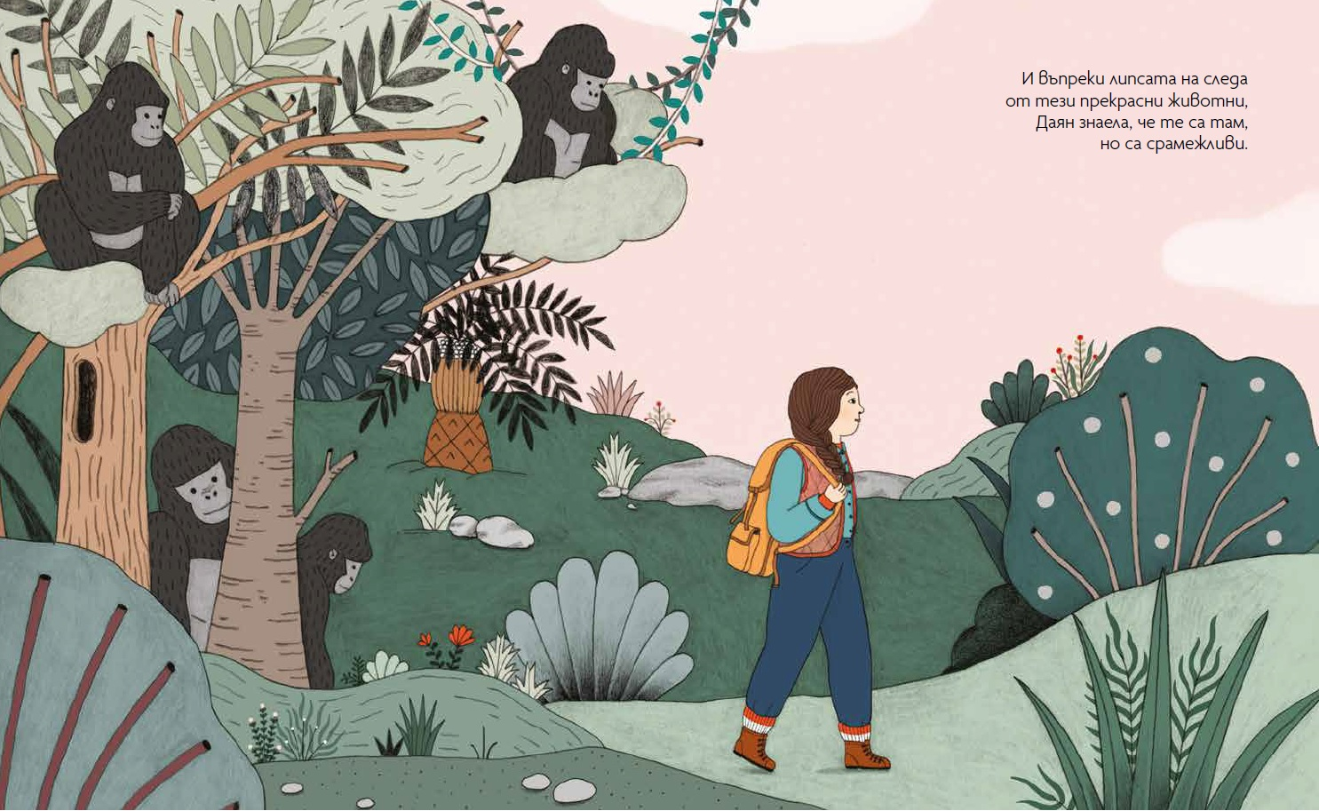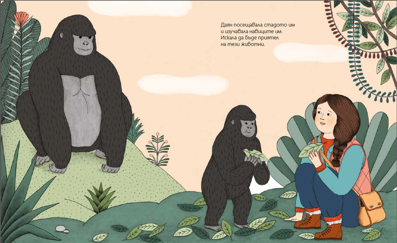 Даян Фоси от малка обича животните. Когато пораства, се впуска във вълнуващо приключение – да опознае света на маймуните и да се сприятели с тях. Книгата разказва за мисията ѝ да изучава и закриля един уникален вид – планинските горили.