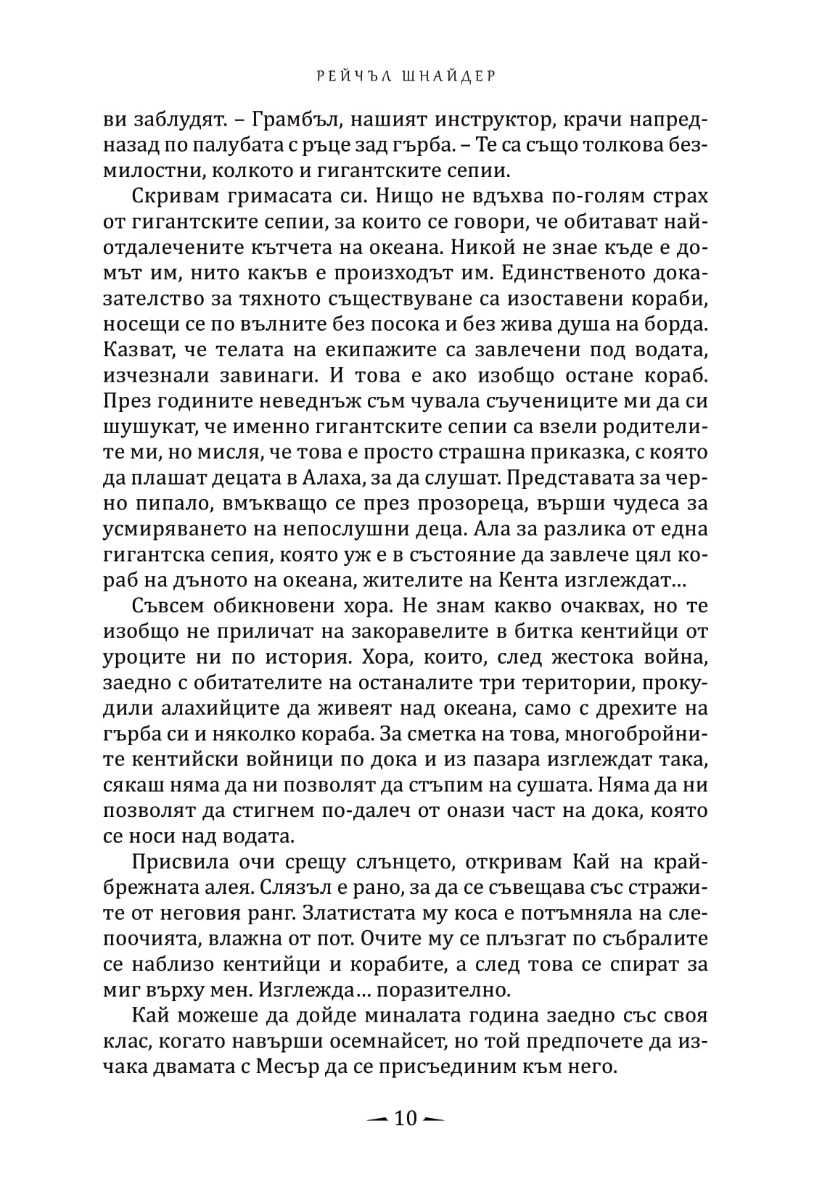 Макар че не е една от тях, Брин прекарва живота си сред алахийците, обучавайки се за страж и чакайки възможността да присъства на годишния пазар, организиран от жителите на Кента - същите хора, които са прокудили нейното общество към живот в морето.