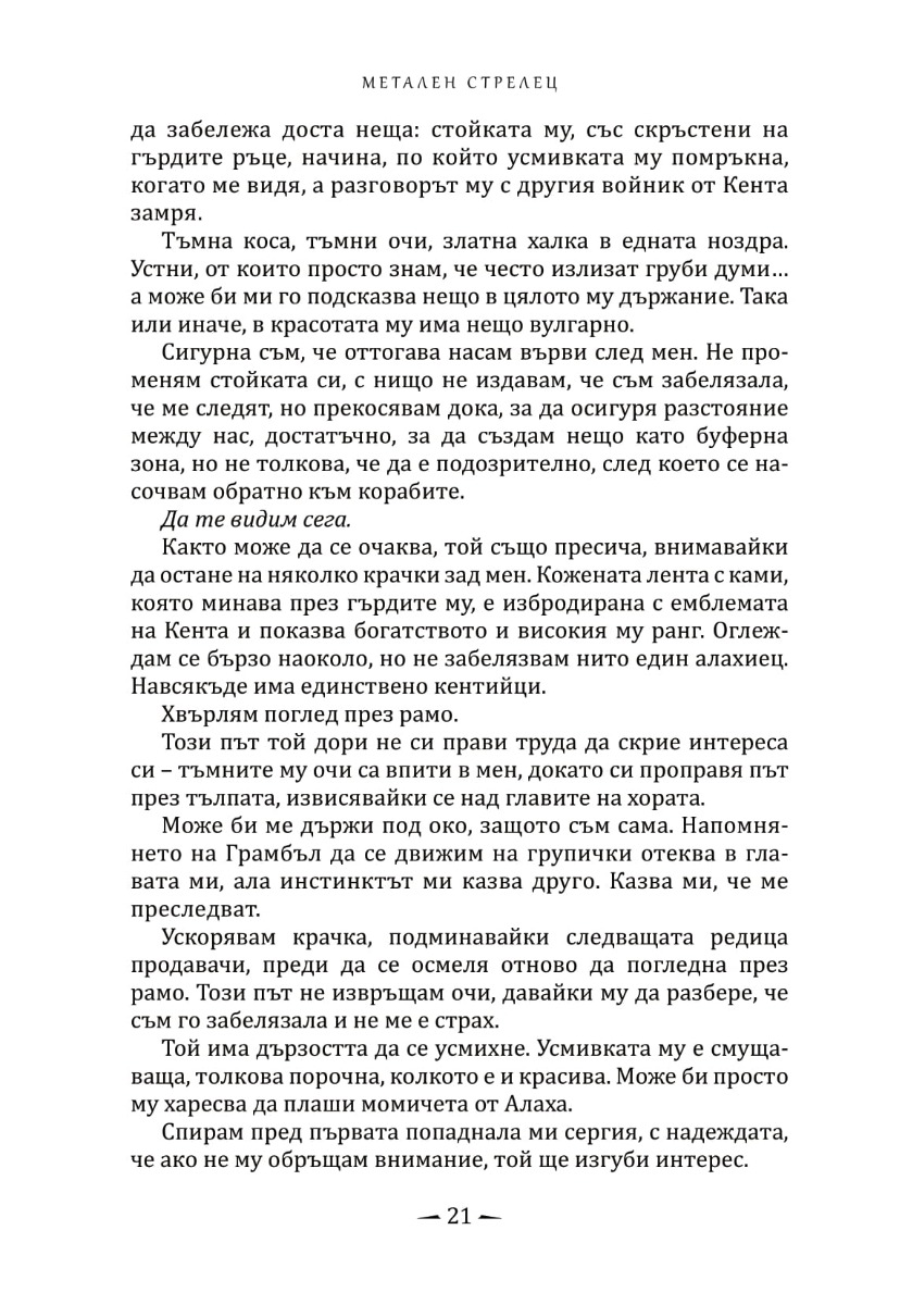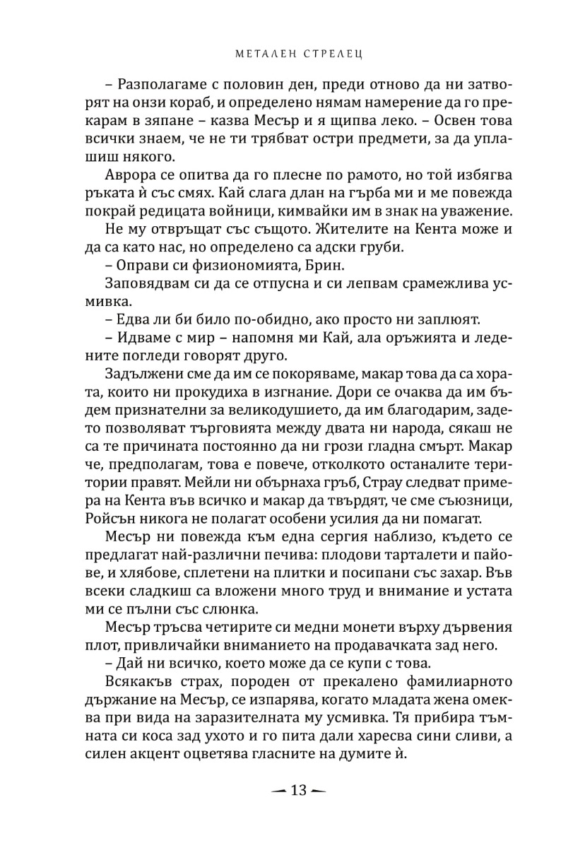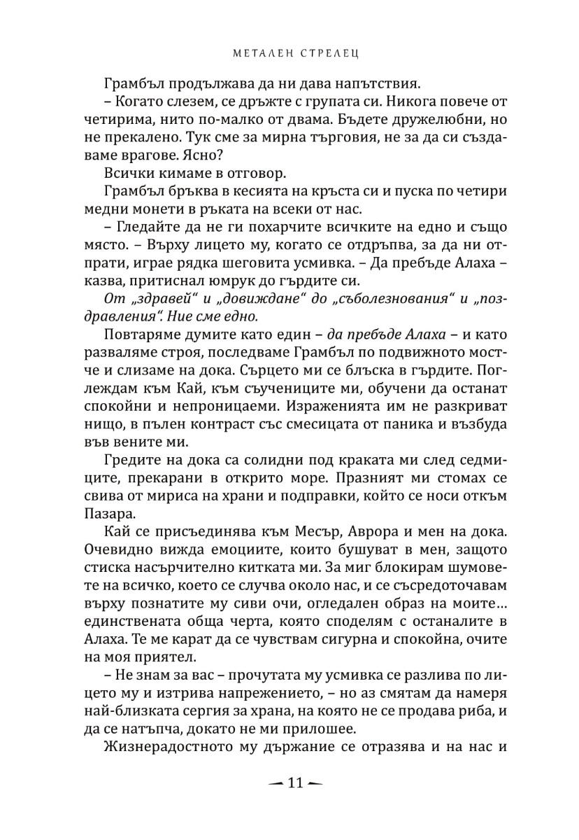 Пазарът е ритуал на преход, очакван с нетърпение от всички млади стражи, за който и Брин мечтае. Едно обаче със сигурност не е било в плановете ѝ – неочакваната среща с вражески войник и нарушаването на вековния мирен договор.