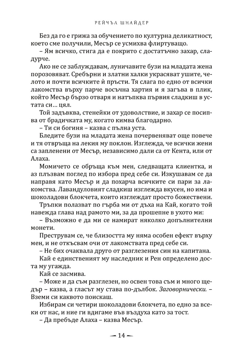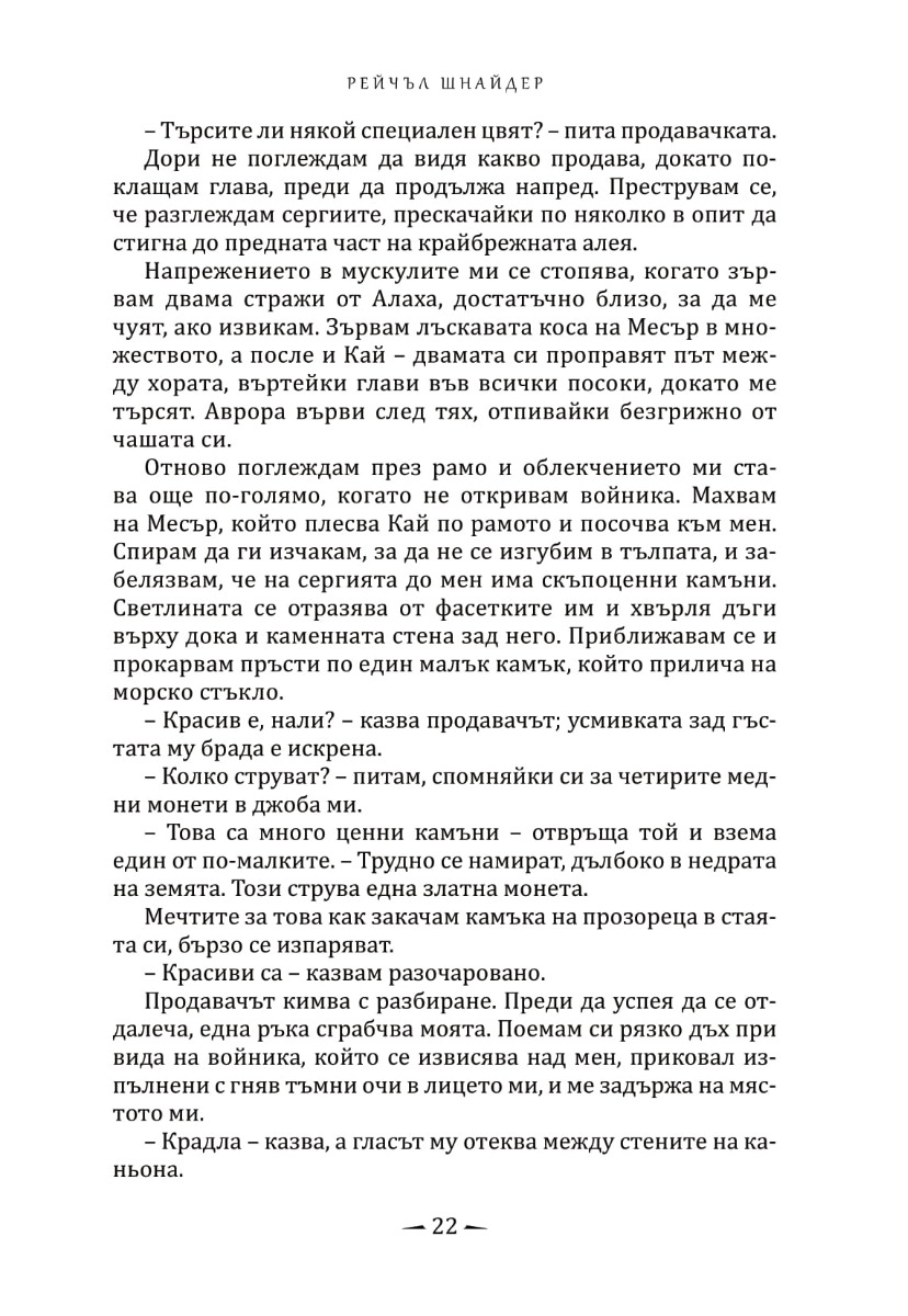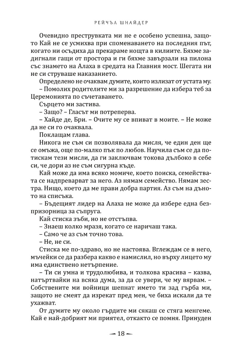 След завръщането си в Алаха тя се сблъсква с последиците: народът ѝ е заплашен от глад и се носят слухове за бунт. Но когато пристига неочакван посетител, Брин открива свят на магия, предателства и опасни съюзи. А тъмните, знаещи очи на този непознат я карат да постави под въпрос всичко, в което някога е вярвала…