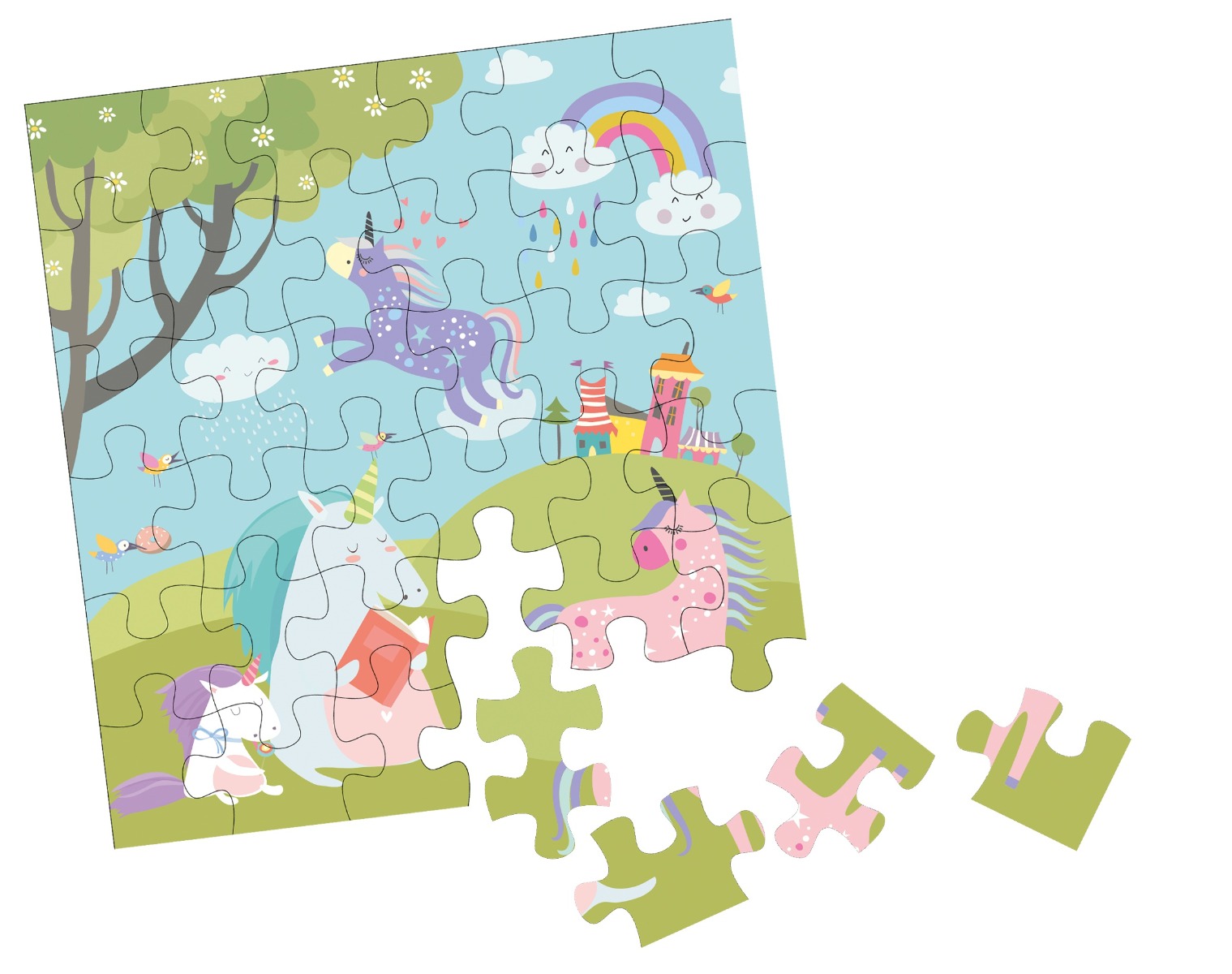 • двустранен пъзел с 36 части за сглобяване и оцветяване;