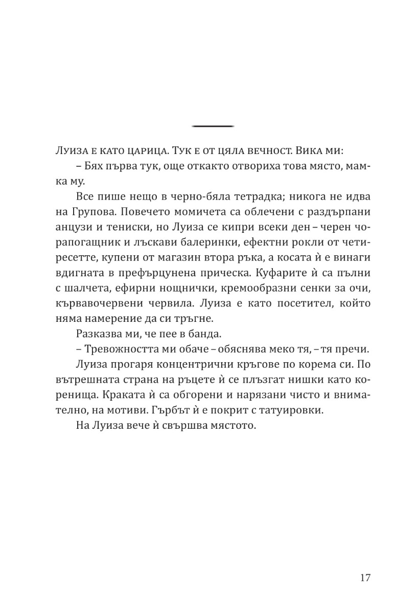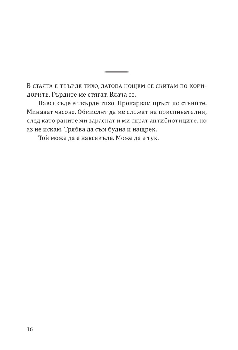 На седемнайсет тя е загубила повече, отколкото други за цял живот. Няма дом, няма семейство. Има само своите белези – с всяко ново порязване сърцето ѝ се смълчава за кратко, докато не остане нищо освен спокойствие… И болка, по-силна от онази, която светът може да ѝ причини.