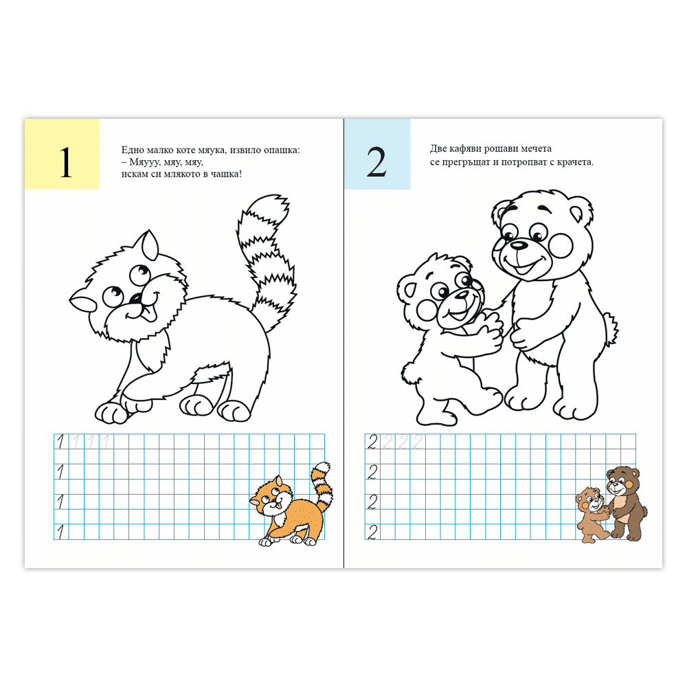 С тази книжка децата бързо и лесно ще научат цифрите и ще направят своите първи опити да ги изписват и сравняват, като научат основните знаци в математиката.