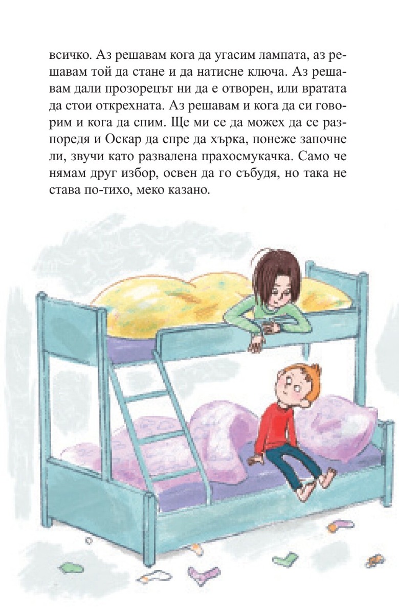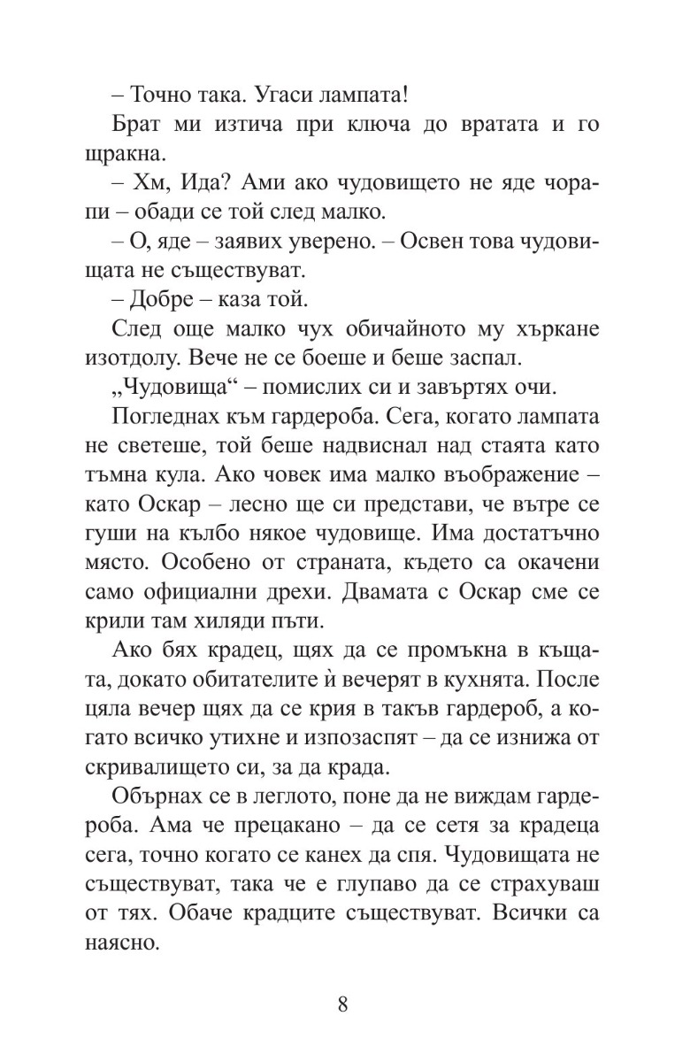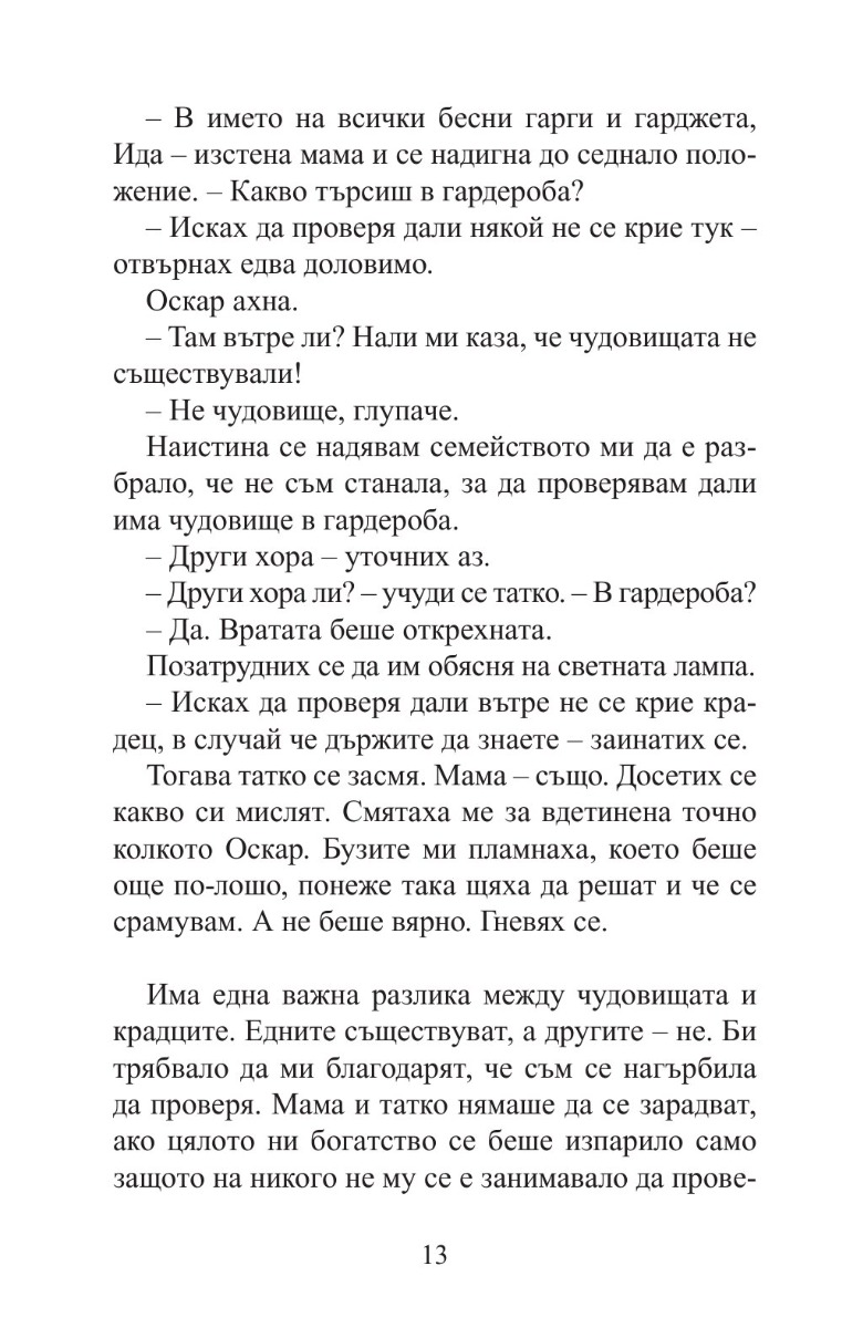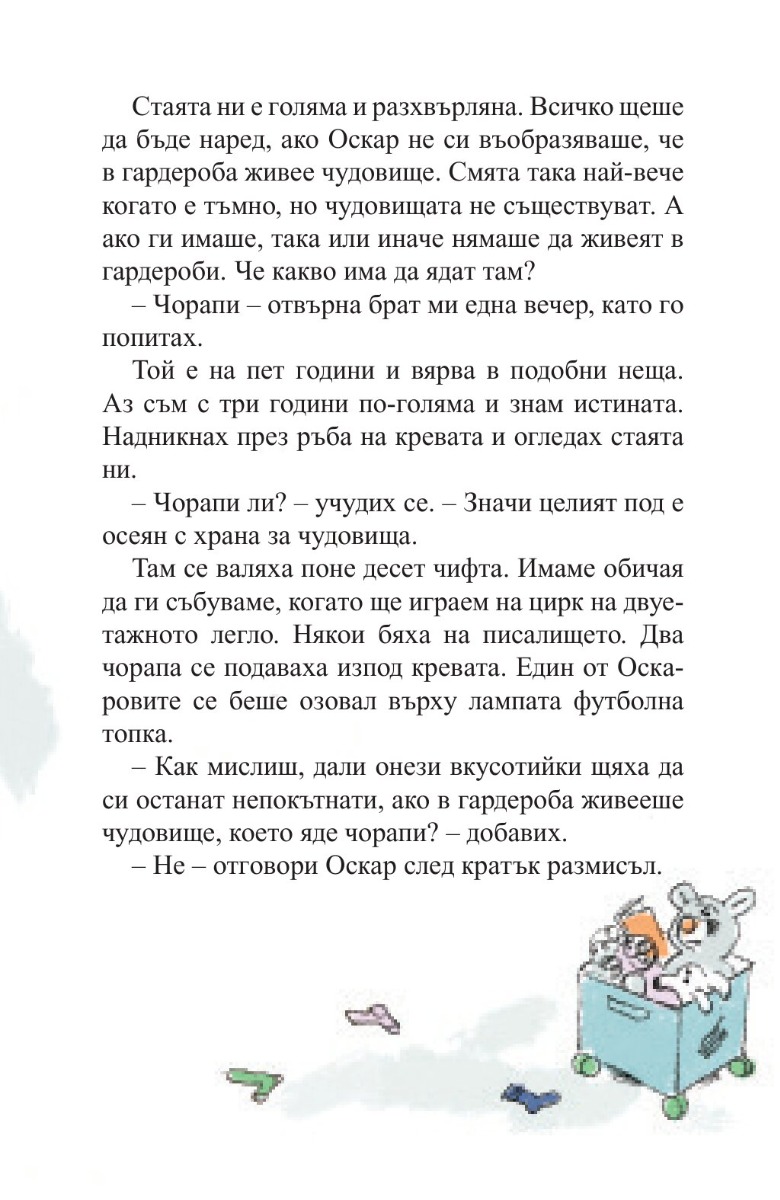 Авторката на „Вафлено сърце“ се завръща с още по-забавен и мъдър роман за здравата връзка между брат и сестра, за спречкванията, но и за обичта между тях. Малкият Оскар вечно е разсеян и прави бели. По-голямата му сестра Ида е разсъдлива и готова да му помогне, макар на моменти да й втръсва да се грижи за него.