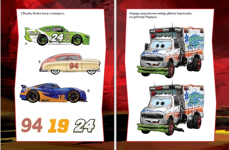 Реши задачите, които Светкавицата Маккуин, Матю и останалите приятели от Радиатор Спрингс са ти подготвили. Използвай приложения маркер, а като приключиш, просто изтрий написаното с гъбата и започни отначало.