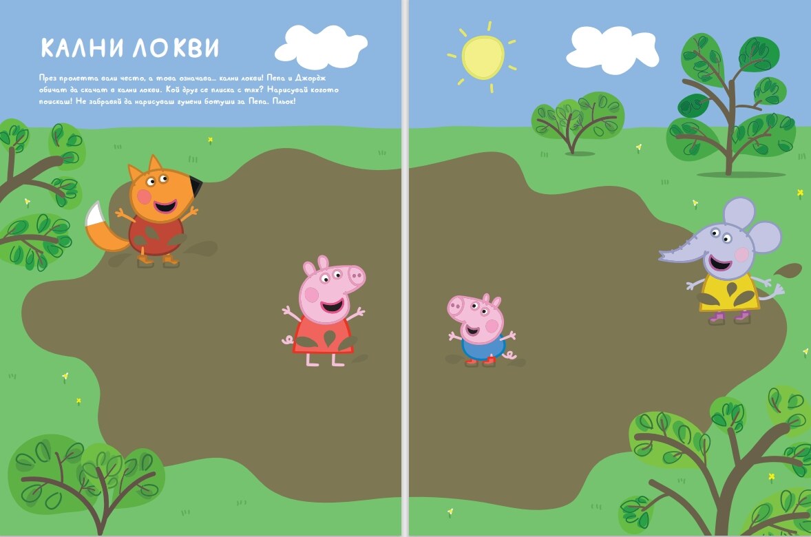 Пепа и приятелите ѝ са ти подготвили страхотни задачки. Използвай приложения маркер, за да ги решиш, а като приключиш, просто изтрий написаното с гъбата и започни отначало.