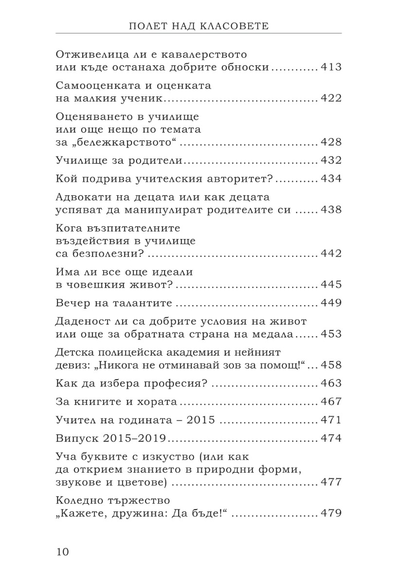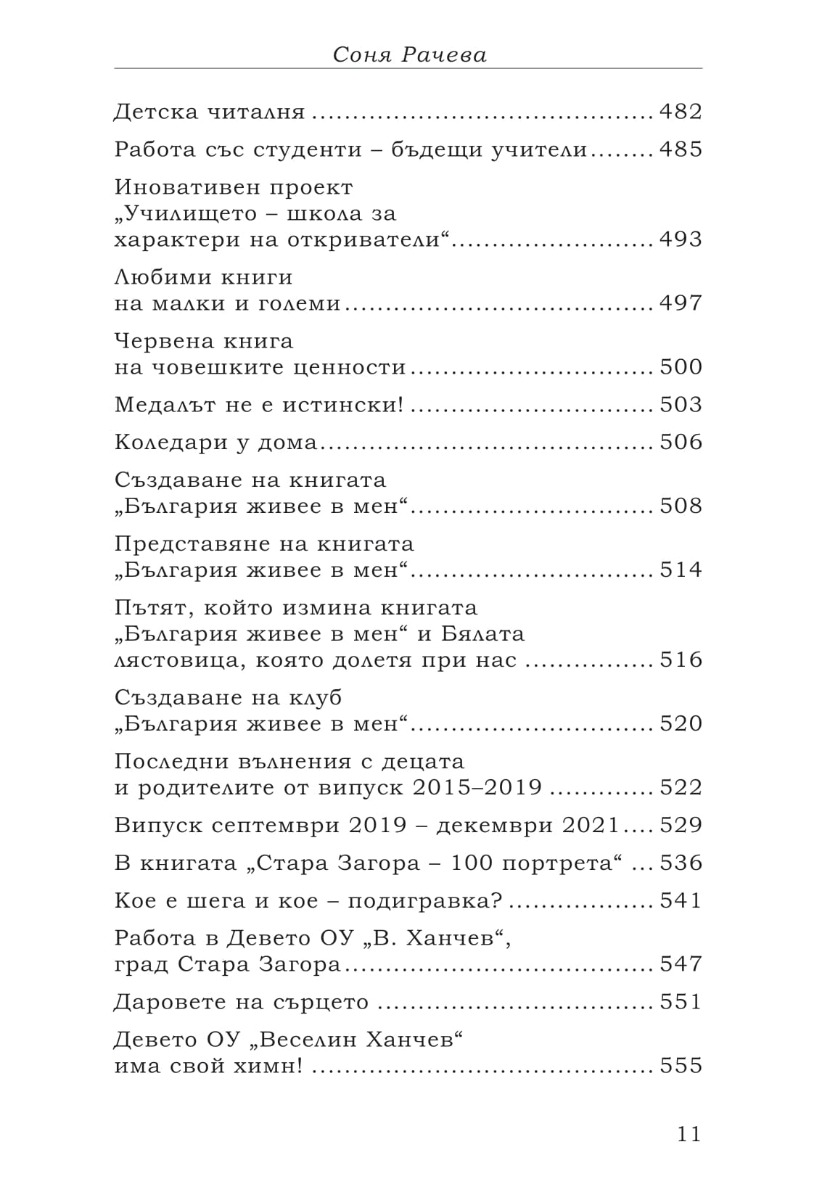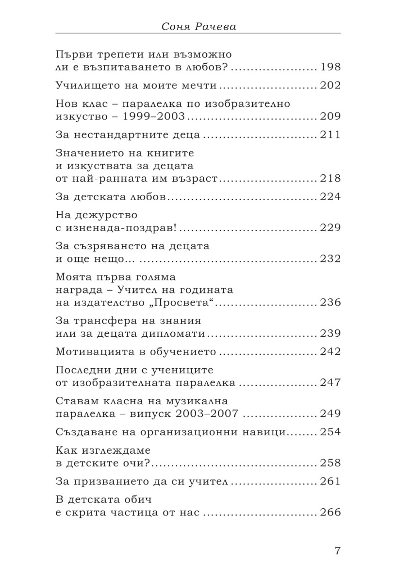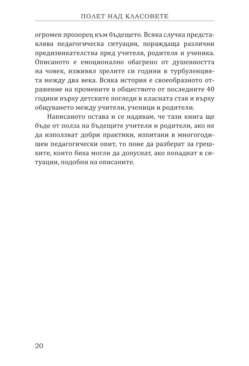 Соня Г. Рачева е родена в Стара Загора и повече от четири десетилетия работи като начална учителка в родния си град. В книгата „Полет над класовете“ описва професионалния си път на педагог, орисан да живее на границата между два века, път който започва от класната стая с черната дъска и тебешира, за да стигне до навлизането на електронните технологии в българското училище. На страниците на книгата са пресъздадени случки и събития такива, каквито са били в действителност, но и емоционално обагрени от преживяванията на няколко поколения деца и родители. „Полет над класовете“ ще предизвика интереса не само на избралите попрището на учителската професия, за да им помогне да вникнат по-дълбоко в същината ѝ, тази книга би била интересна и на онези, които не са безразлични към училищния живот и желаят да го съпреживеят, потапяйки се в написаното.