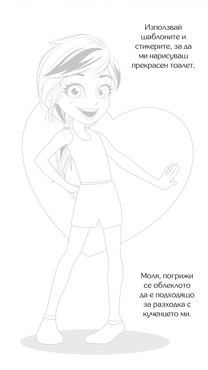 Създай своя собствена колекция! Избери красив десен,  постави шаблона и очертай избраната дреха. Изрежи я и я залепи на любимия си модел. Оцвети рисунката и добави стикери за акцент. Вече си истински моден дизайнер!