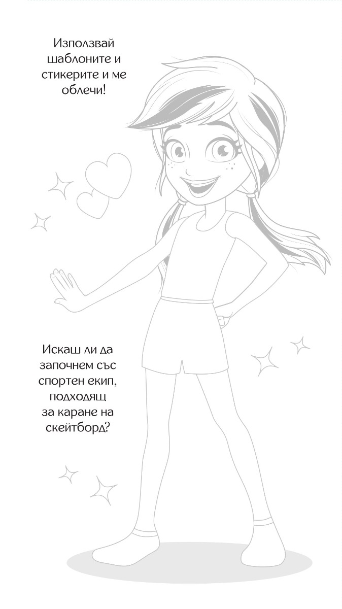 Създай своя собствена колекция! Избери красив десен, постави шаблона и очертай избраната дреха. Изрежи я и я залепи на любимия си модел. Оцвети рисунката и добави стикери за акцент. Вече си истински моден дизайнер!