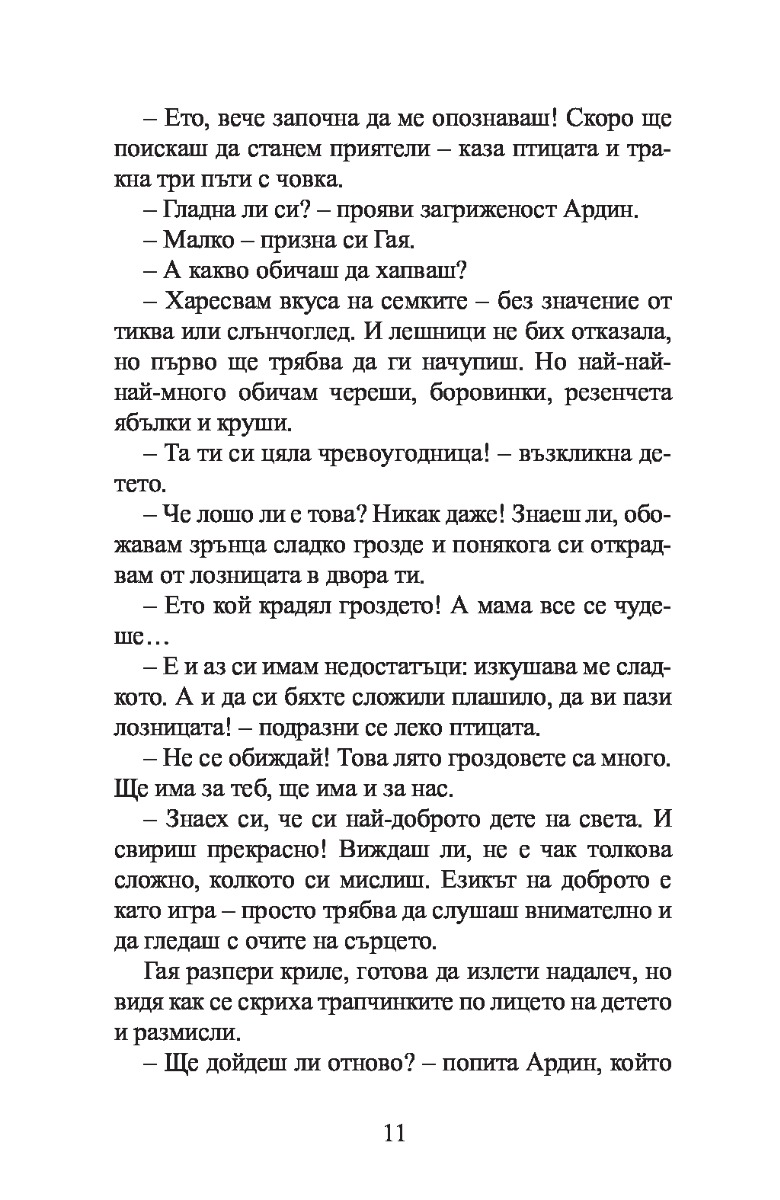 Ардин е любопитно и смело момче, което живее в малко село в Родопите. Заедно с хитрата сврака Гая, която го учи на езика на животните, Ардин научава кои са най-ценните неща в живота: истинското приятелство, уважението, обичта, трудолюбието и мъдростта. Двамата преживяват необикновени приключения в гората, откриват древно светилище и изгаснал вулкан…
