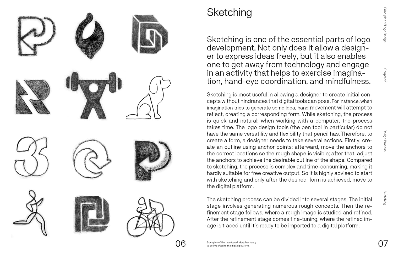 In Principles of Logo Design, noted logo designer George Bokhua shares his process for creating logotypes that will stand the test of time. Applying the enduring principles of classic texts on grid systems by Josef Muller-Brockmann and on form and design by Wucius Wong, Bokhua elaborates on his popular online classes, demonstrating in detail how to maximize communication with minimal information to create logos using simple, monochromatic shapes.