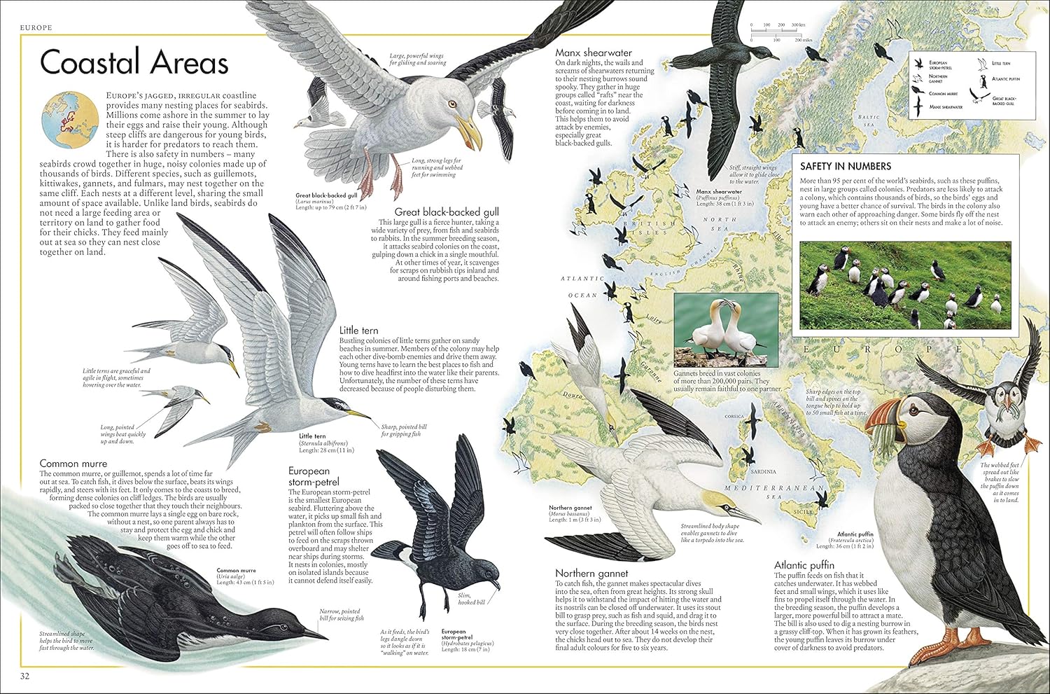 The Bird Atlas is arranged in order of continent - Europe, Asia, Africa, Australasia, North America, South America, and Antarctica. Every continent is introduced with an overview of the ecology, climate, and landscape, and the typical and incredible birds that live there. This children's bird book is the perfect introduction to our feathered friends and makes a great gift for the new generation of birdwatchers.