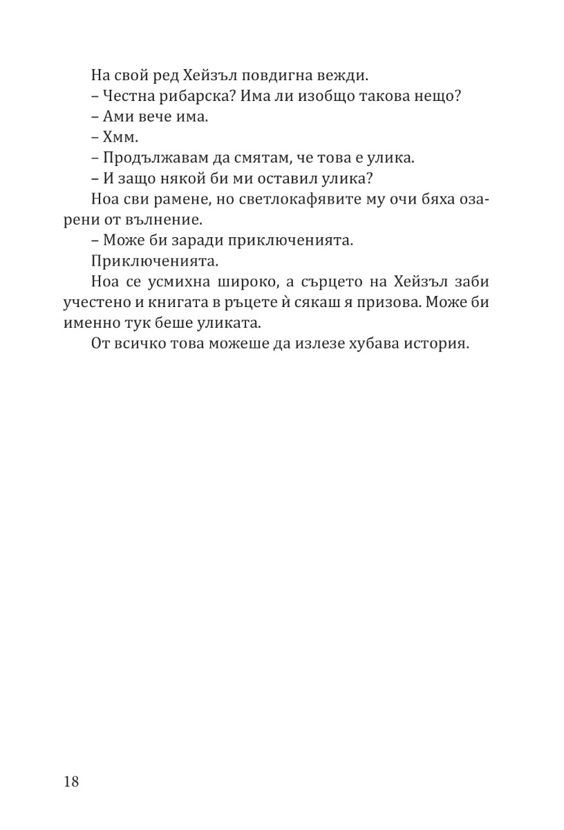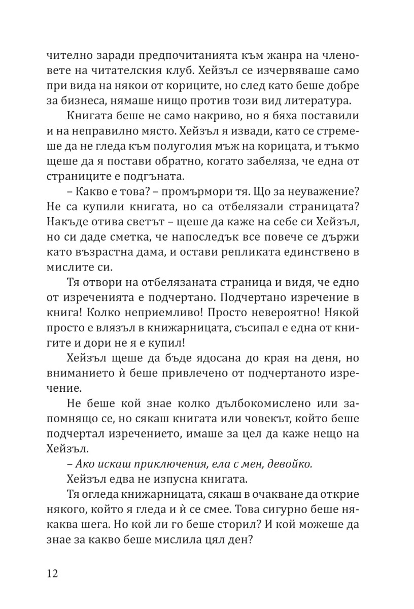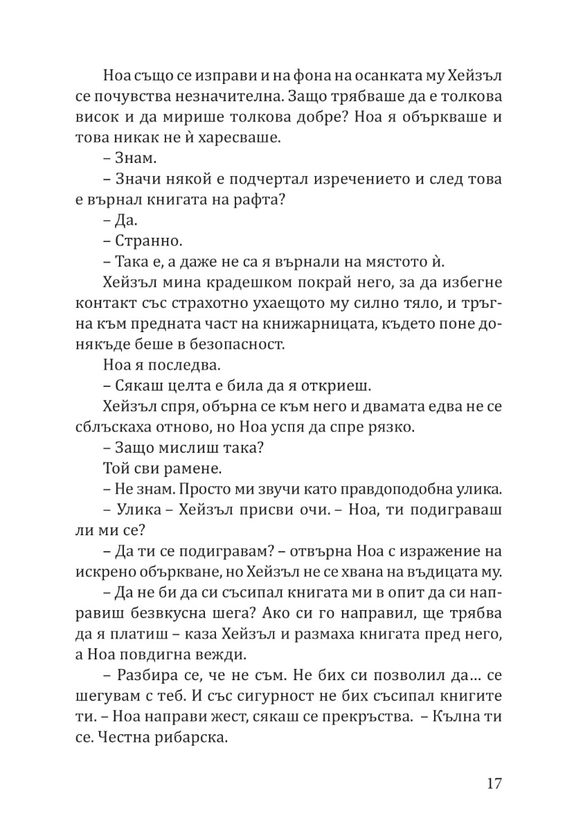 Когато един ден обаче започва да намира загадъчни послания, скрити между страниците, приключенският ѝ дух започва да се разбужда. Ала скоро Хейзъл разбира, че ѝ трябва съюзник, за да открие истината.